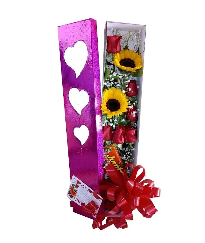 DESCRIPCIÓN: 6 Rosas, 2 girasoles Chocolatina